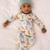 Welcome littles in cozy comfort with the Sweet Safari Infant Gown. Made from buttery soft Lunaluxe? Bamboo that’s so gentle on baby’s delicate skin. this animal-print newborn gown features fold-over mittens to protect tiny cheeks. The envelope sweep makes diaper changes a breeze. while lap shoulders make for fuss-free dressing. With its tagless design and seasonless comfort. it’s your go-to for those countless precious firsts. Comes in a bamboo keepsake bag that doubles as a gift bag!