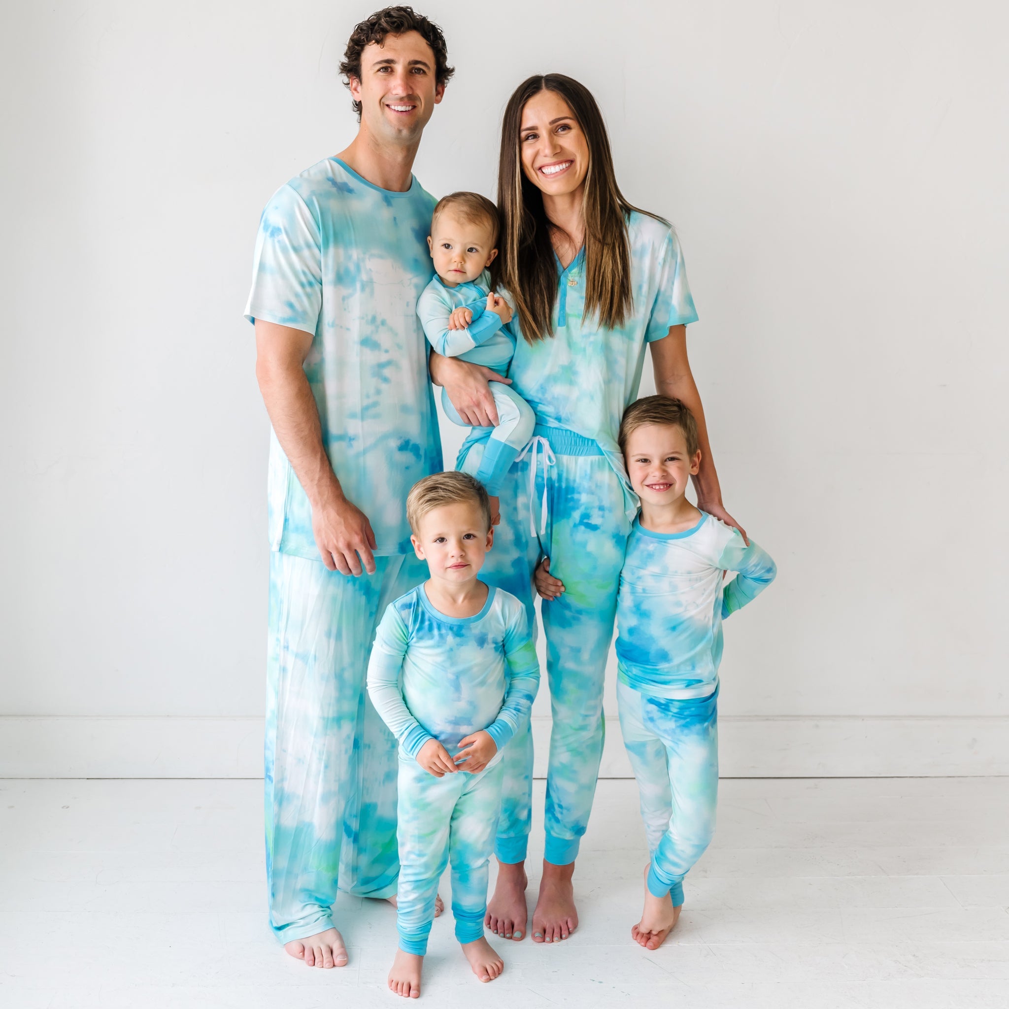 Look what the tide brought in! This fan-favorite watercolor print is making a splash. Featuring a tie dye style blend of blues. greens. and white. Tidepool Watercolor is perfect for Family Matching moments and the sweetest dreams.