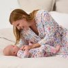 Pretty watercolor blooms make every bonding moment feel extra precious. This silky soft Lunaluxe® Bamboo floral robe features a relaxed. bump-friendly silhouette with a removable belt and inner tie closure for the perfect fit. The contrast piping adds an elevated touch. while two side pockets keep your essentials close during those sleepy morning feeds. With its tagless design. this dreamy robe is perfect for hospital homecomings. slow Sunday mornings. and matching with your littlest love.