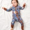 Owl always be your bedtime bud! The Twilight Pals Zippy features adorable owls and foxes with forest details on a dreamy blue-gray backdrop. Made from buttery soft Lunaluxe® Bamboo that’s gentle on sensitive skin. this bamboo baby sleeper has fold-over mittens. convertible foot cuffs. and an easy double zipper. Perfect for family matching and woodland dreams!