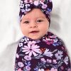 Little wildflower wonder! The Violet Meadow Swaddle & Luxe Bow Headband Set features a magical meadow in rich fall hues on stretchy Lunaluxe? Bamboo. This layette set includes a versatile baby swaddle blanket and adjustable bow headband that never needs tying. Packaged in our signature peekaboo gift box. it’s perfect for autumn baby showers!